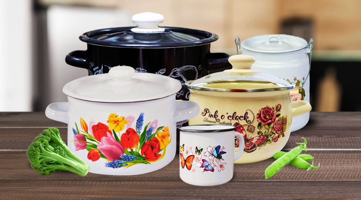 Eine große Auswahl an hochwertigen Emailwaren. Töpfe, Schüsseln, Becher, Eimer und mehr. Riesige Auswahl an Muster und Farben im modernen Design.
