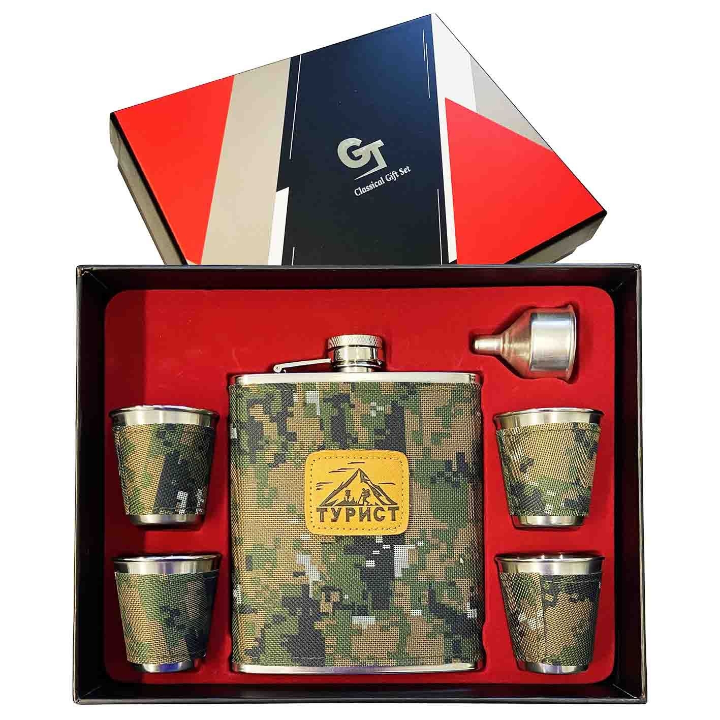 Flachmann "Wanderer" 540 ml + 4 Gläser + Trichter