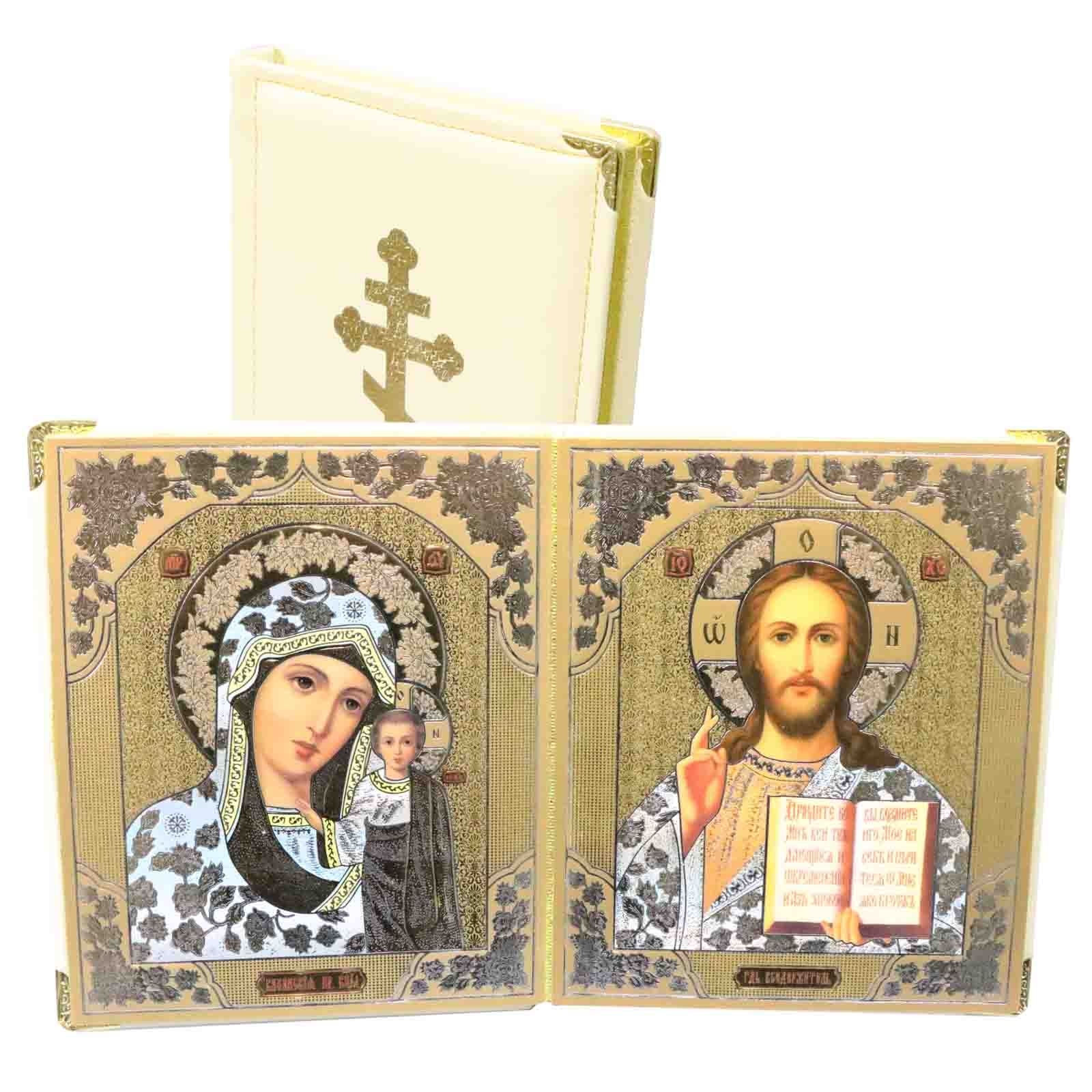 Ikone 2-fach (Holz in Kunstleder, weiß), 15x18 cm