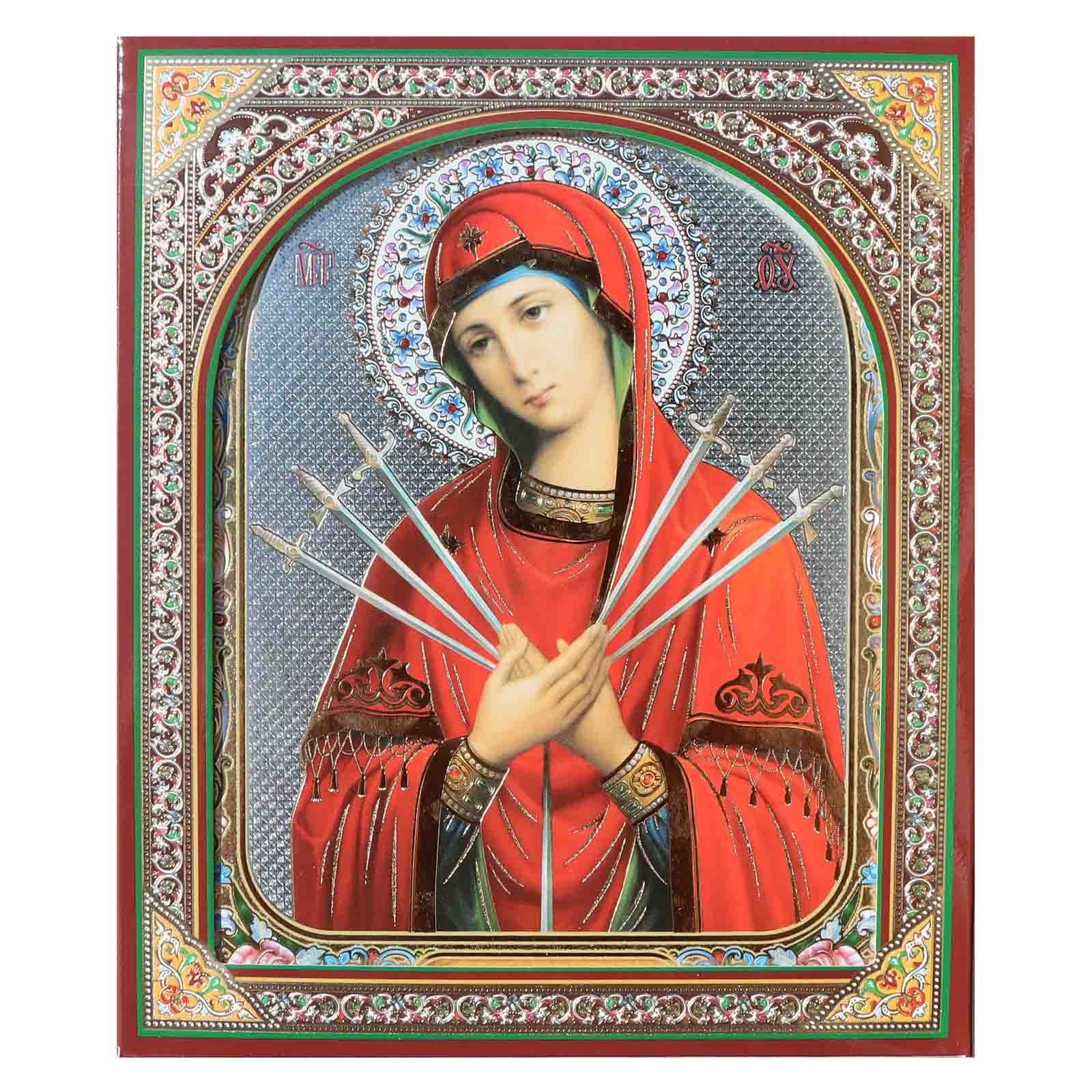 Ikone (Holz), in Kartonbox, "Semistrelnaja", 15x18 cm