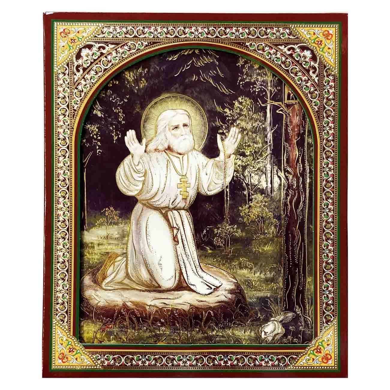 Ikone (Holz), in Kartonbox, "Serafim Sorovsky Тschudotvorets", 15x18 cm
