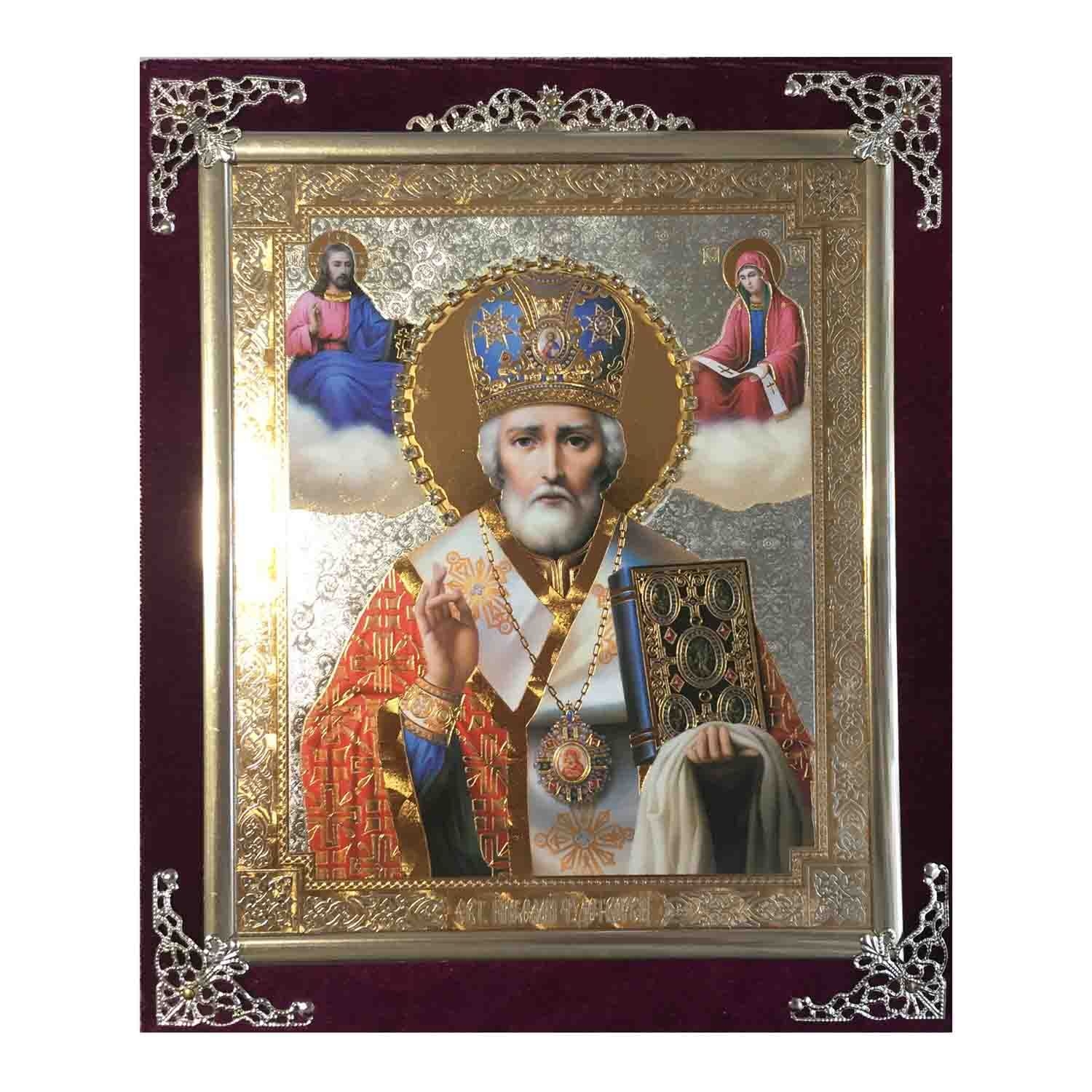 Ikone (Holz in Samt), Nikolaj, 15x18 cm