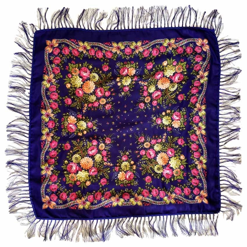 Kopftuch "Volksmotive", blau, 110x110 cm