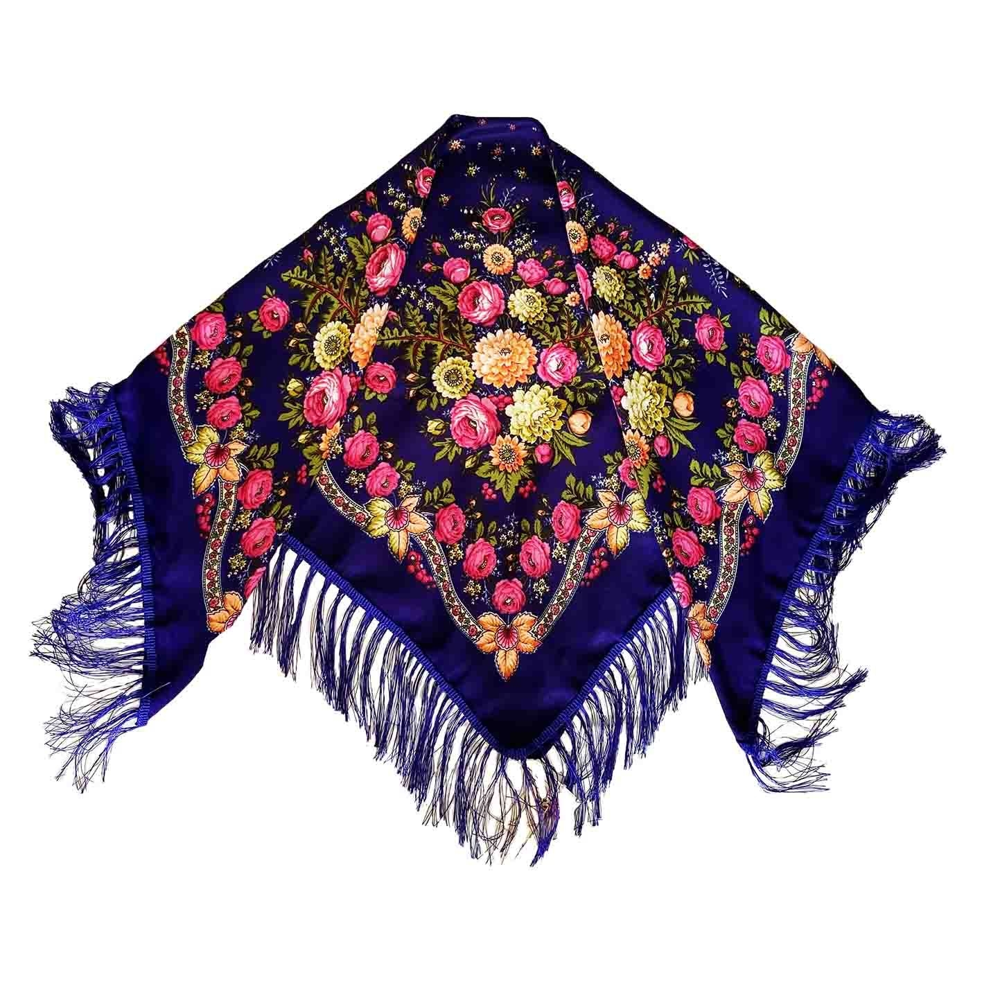Produktinformationen: Kopftuch "Volksmotive", blau, 110x110 cm