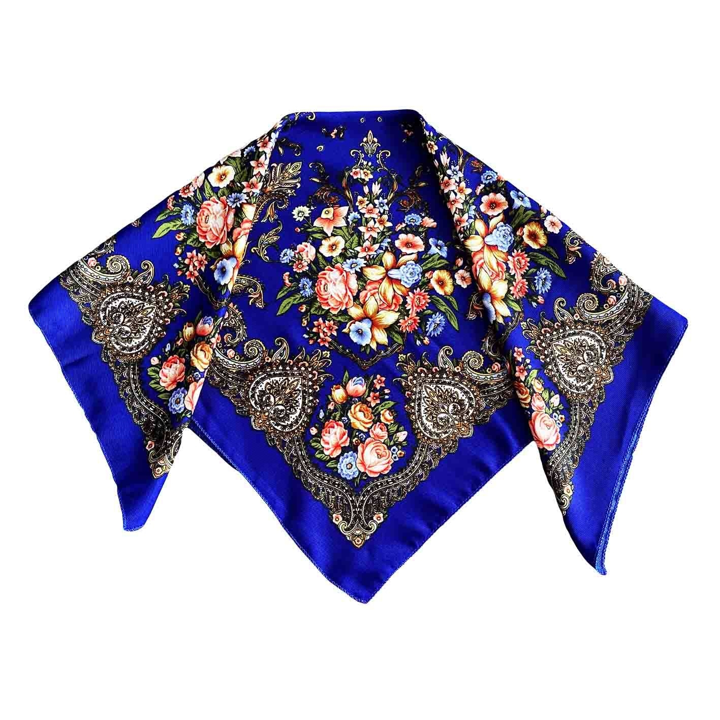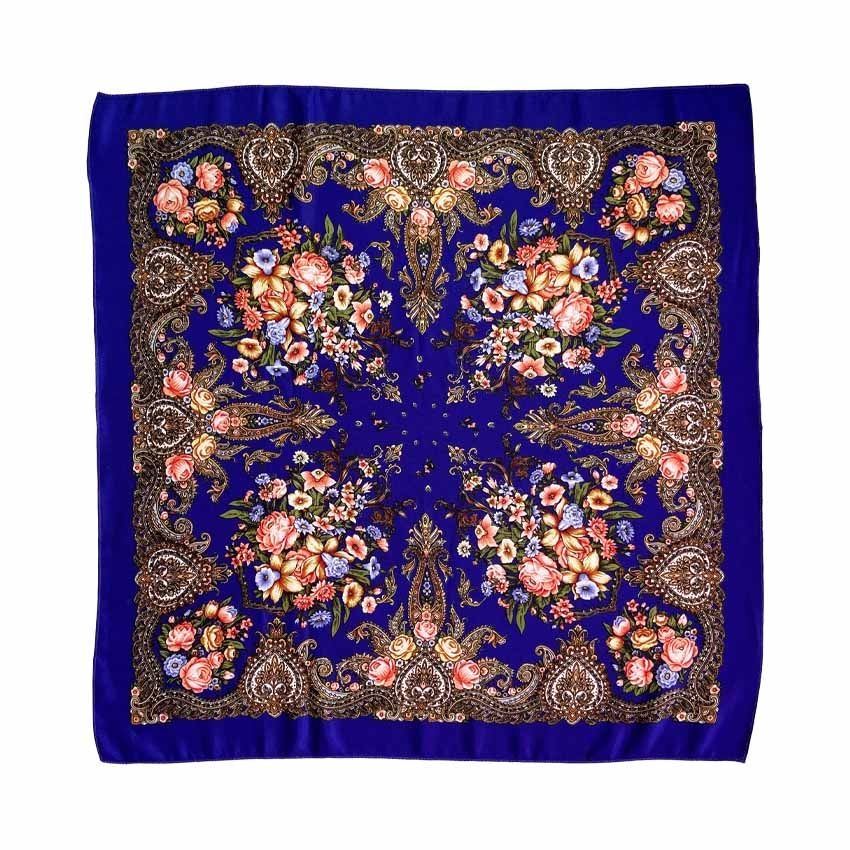 Kopftuch "Volksmotive", blau, 70x70 cm