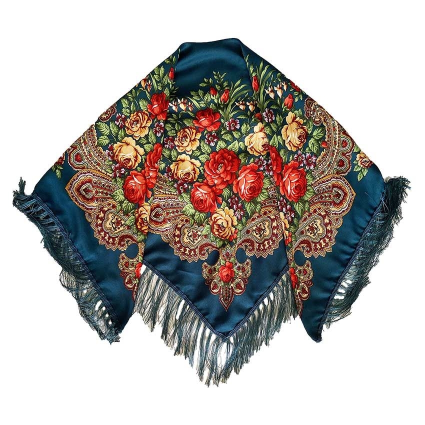 Kopftuch "Volksmotive", dunkles Türkis, 110x110 cm