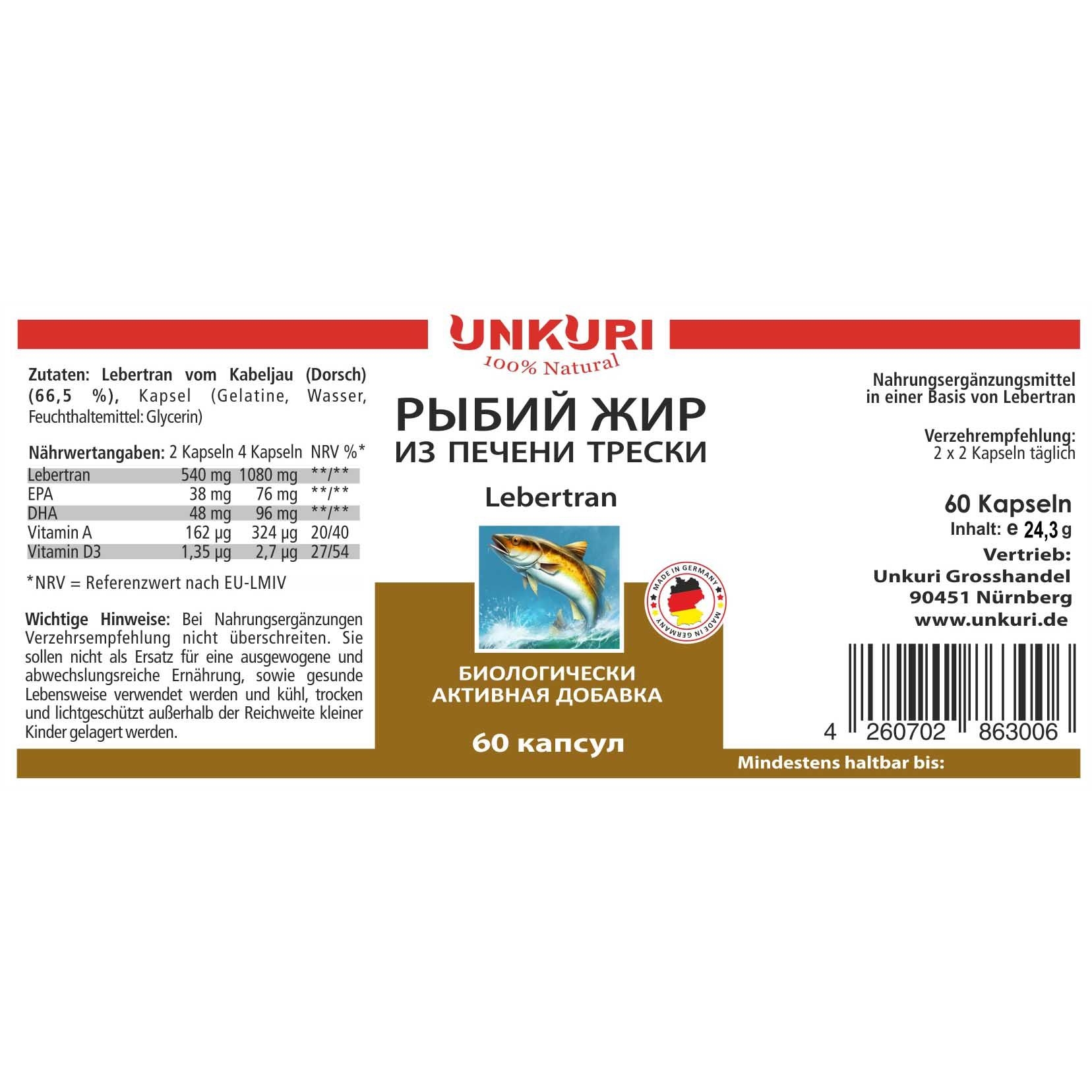 Lebertran wird seit langem als Nahrungsergänzung genutzt. Vor allem bei den Völkern, welche in Ländern mit wenig Sonneneinstrahlung leben, um das wichtige Vitamin D zu erhalten. In Norwegen z. B. wird regelmäßig Lebertran verzehrt. Der Lebertran wird aus frischer Dorschleber gewonnen. Er ist nicht nur reich an Vitamin D, sondern auch an Vitamin A sowie Omega-3-Fettsäuren, Eicosapentaensäure (EPA) sowie Docosahexaensäure (DHA). Die Dorschleber-Öl-Kapsel enthält 270 mg hochwertigen Lebertran. In unseren Breitengraden, fehlt die Sonne für die Bildung von Vitamin D, vor allem ab Herbst. Aber auch durch Aufenthalt in Gebäuden (Büro, Haushalt, Schule), lässt an Vitamin D selbst im Sommer mangeln.
