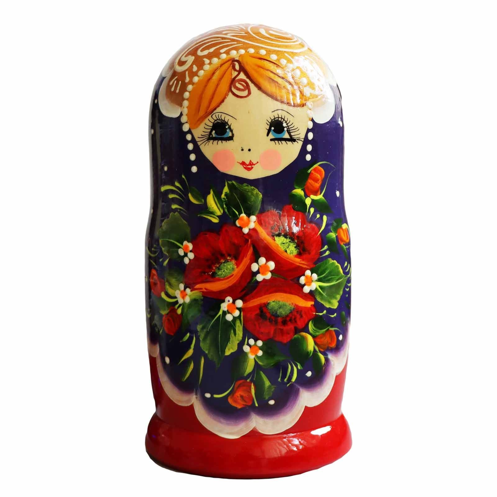 Matröschka "Volksmalerei - "Rote Mohnblumen", 22-23 cm (7 Figuren)