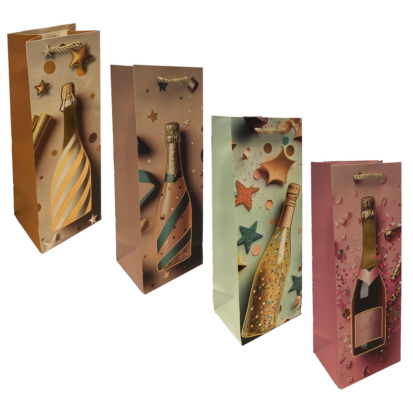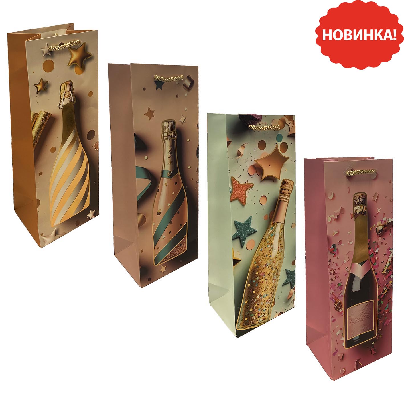 Подарочная сумка для бутылки "Шампанское и звездочки", 36х13 см