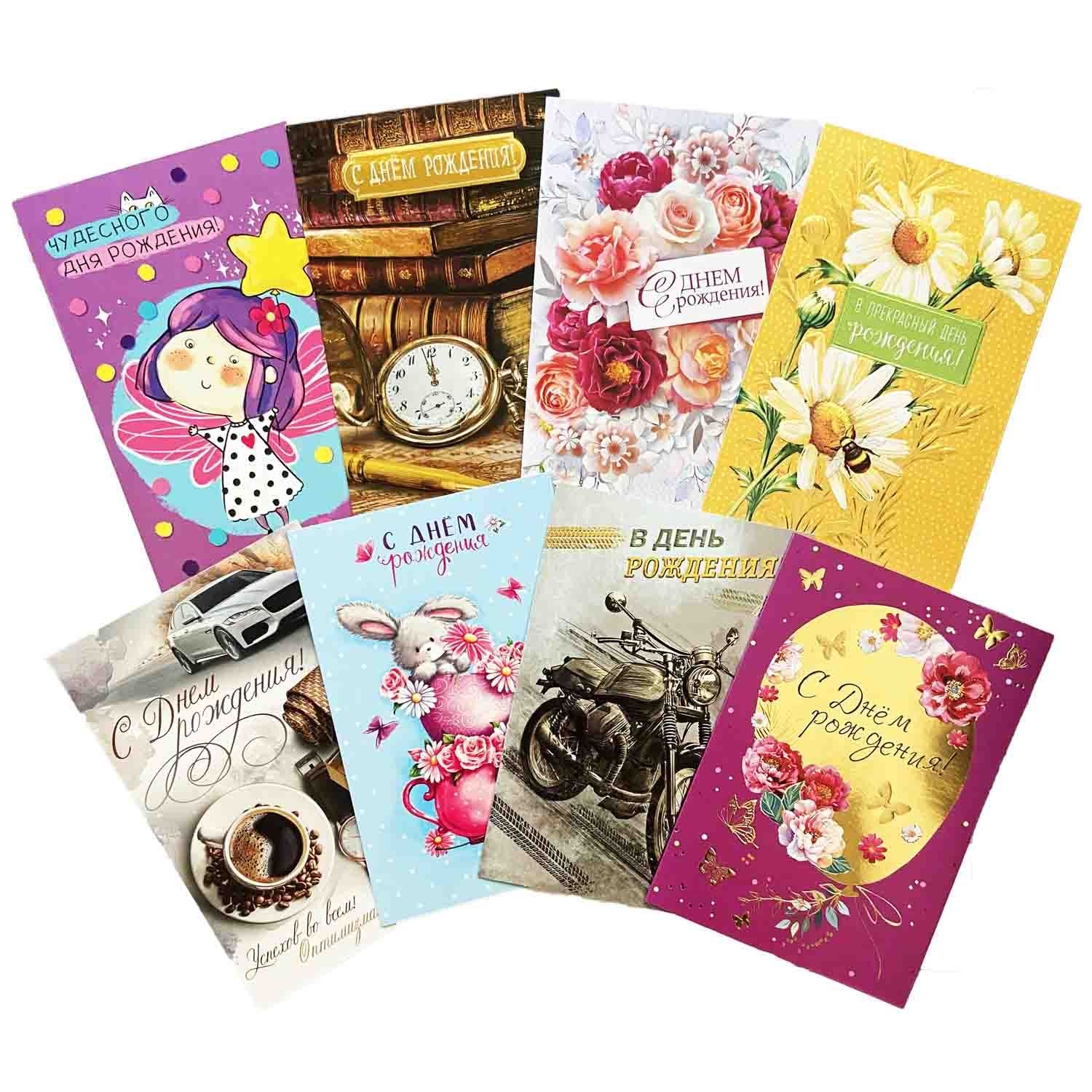 Открытка B6 "С днём рождения", комплект 30 шт.