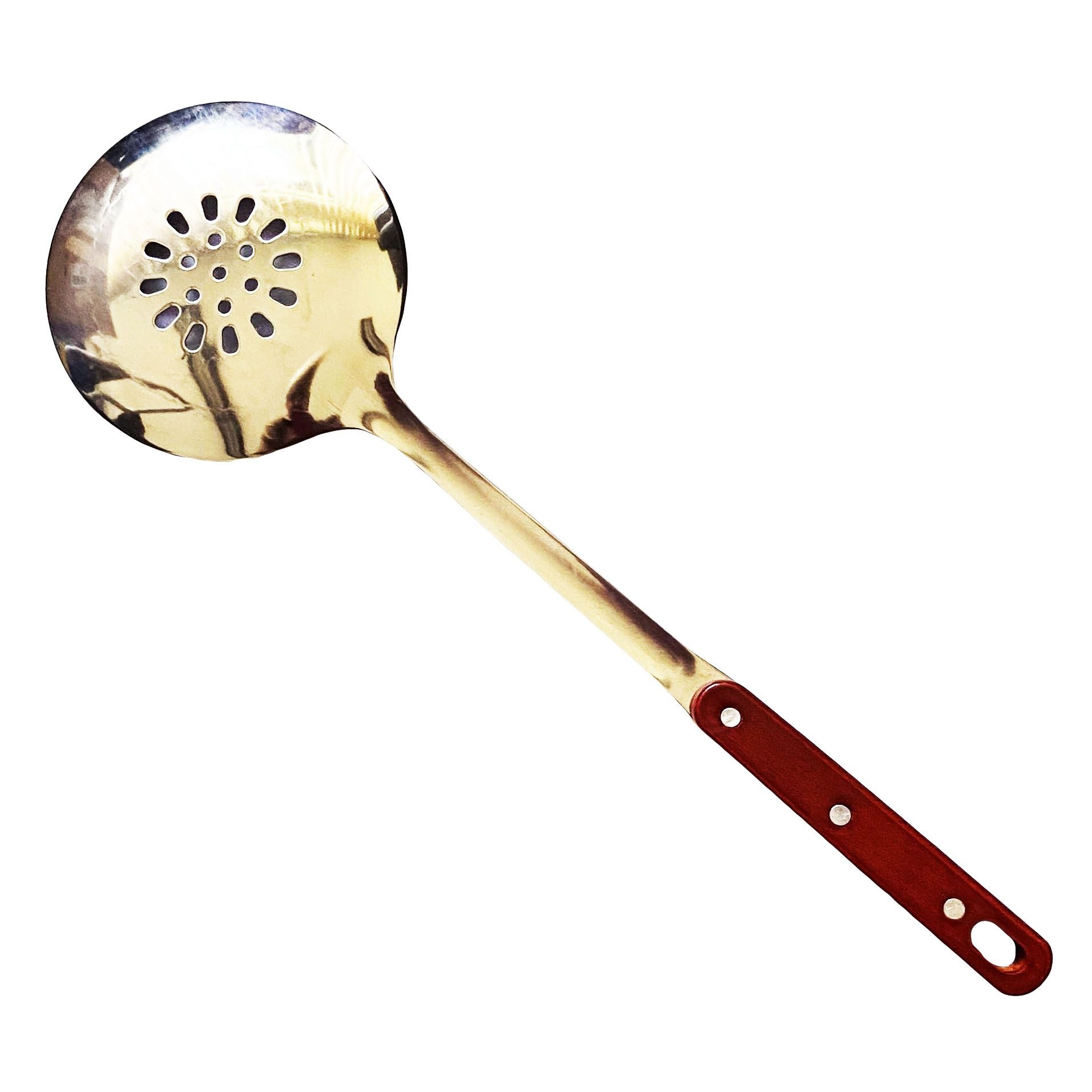 Schaumkelle für Kessel mit Löchern, 38 cm (Edelstahl, Holz)