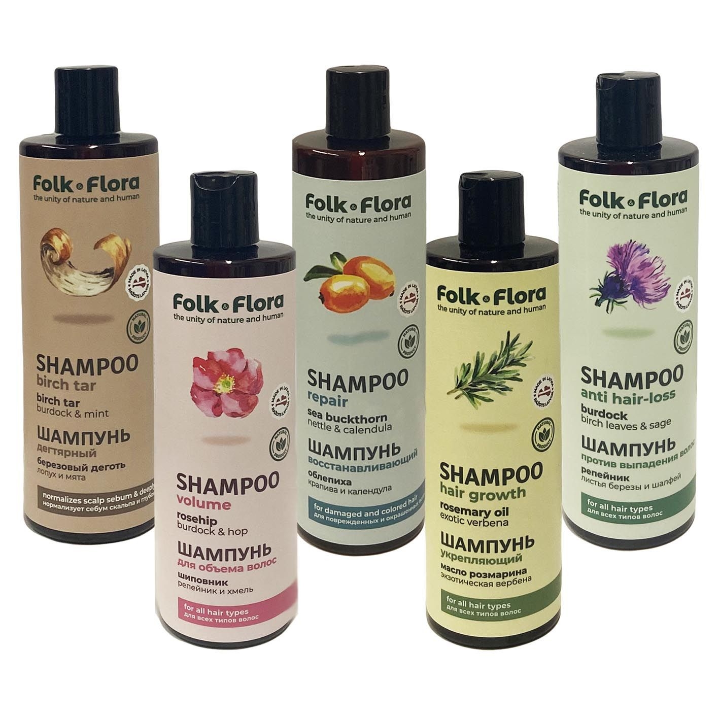 Shampoo "Folk Flora", Volumenshampoo mit Hagebutten, 400 ml