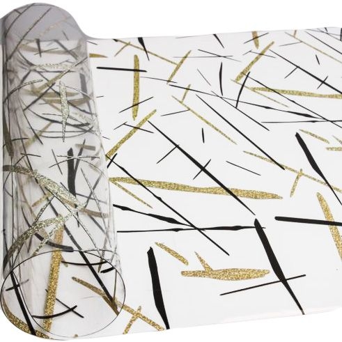 Tischdecke PVC "3D", 100cm/10m, Goldene und schwarze Streifen, (6052)